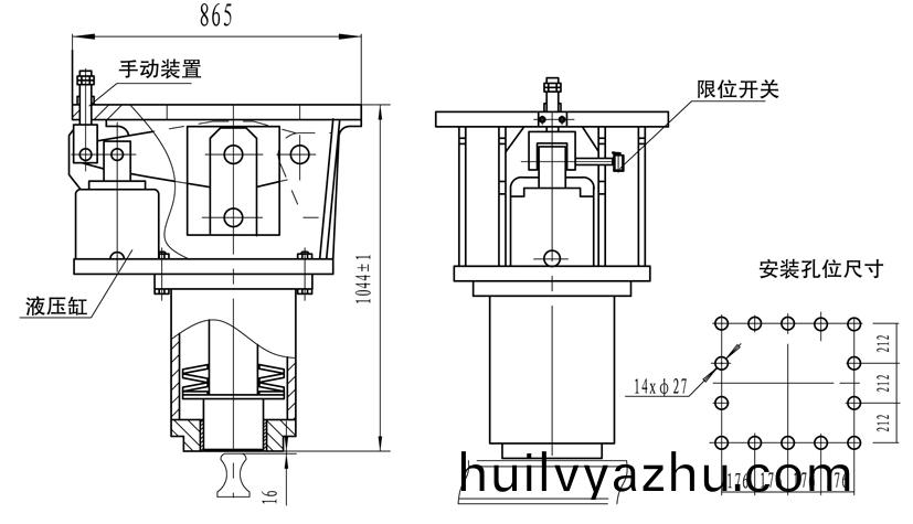 主要(yao)設計特(te)點: 常(chang)閉(bi)式設計、採用液(ye)壓(ya)站(zhan)集(ji)中(zhong)驅(qu)動(dong)控(kong)製(zhi)以(yi)特(te)製(zhi)碟(die)形(xing)彈簧(huang)實現(xian)頂(ding)軌(gui)製(zhi)動(dong); 摩擦塊採用先(xian)進(jin)的高(gao)耐磨鋼(gang),性能(neng)可(ke)靠(kao); 設(she)有(you)限(xian)位(wei)開(kai)關,顯(xian)示(shi)工作狀態; 帶手(shou)動釋(shi)放(fang),安(an)裝(zhuang)維護(hu)方便。