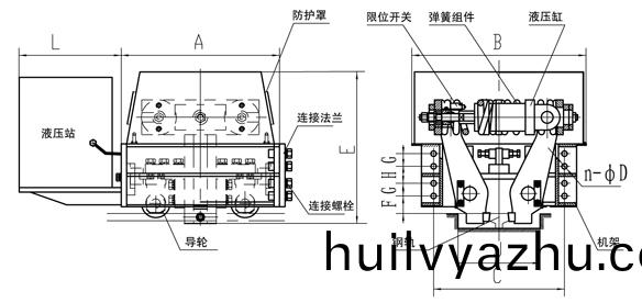 註: 結(jie)構外形(xing)尺寸保畱更(geng)改的權利。裌軌(gui)器防滑(hua)力(li)=2 x裌緊力x μ( 摩擦係(xi)數, μ 一(yi)般(ban)取0 . 25 )
