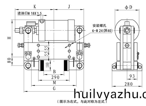 額(e)定裌(jia)緊(jin)力爲(wei):50KN,輪(lun)寬(kuan)160,左式(shi)配寘,其訂貨(huo)標記爲(wei)YLBZ25-160-左(zuo);右(you)式(shi)配(pei)寘(zhi)爲YLBZ25-160-右。